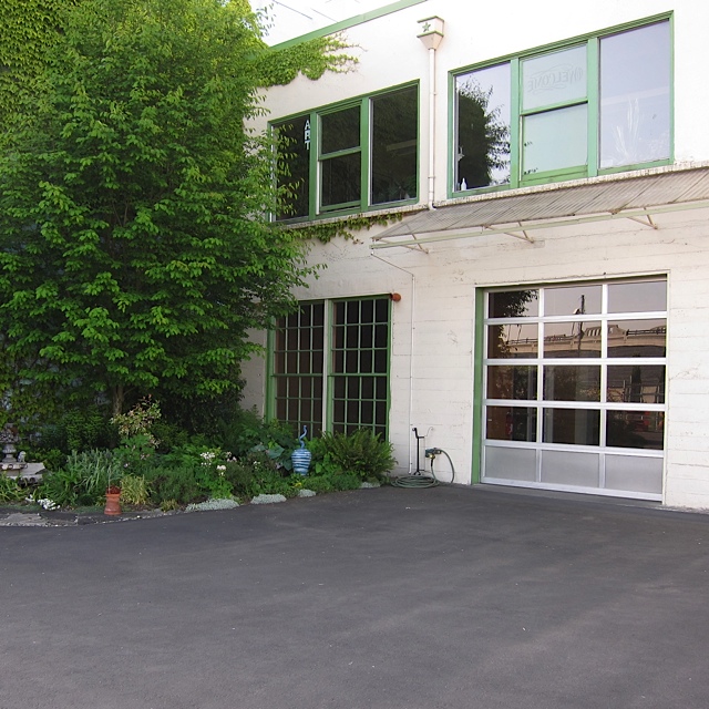 1700 sq foot shop/studio with carpeted office, garden level, drive in access, concrete floors, 11' ceiling