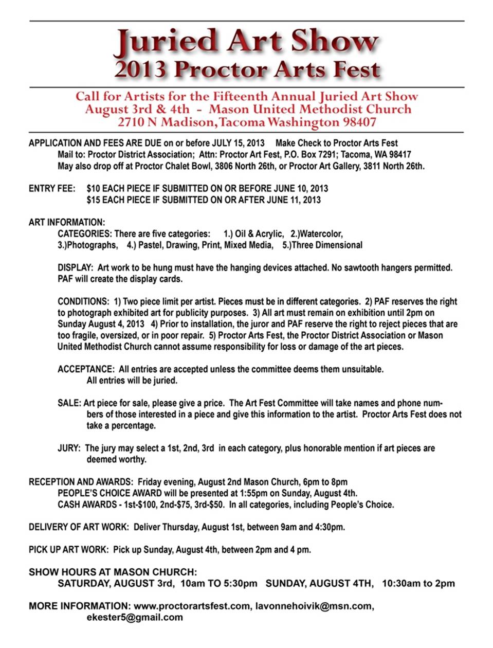 Subject: First Deadline Today - Proctor Arts Fest Juried Art Show