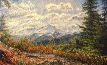 “I am inspired by the wildness and beauty of the Pacific Northwest and memories of my family's cabin on Mount St. Helens which was destroyed in the 1980 eruption,” said Martin. “My tools include hair picks, chopsticks and other non-traditional objects, creating layers upon layers of paint strokes to slowly build the natural textures of mountains, trees, raptors and clouds.”