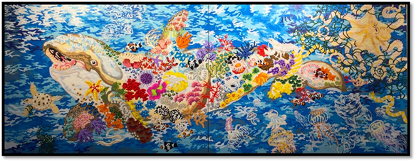 Orca Ecosystem, Andrea Bergen, Cut paper and gel topcoat on wood panel.