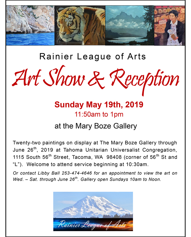 Art Show & Reception: by "Rainier League of Arts", Sunday, May 19th,