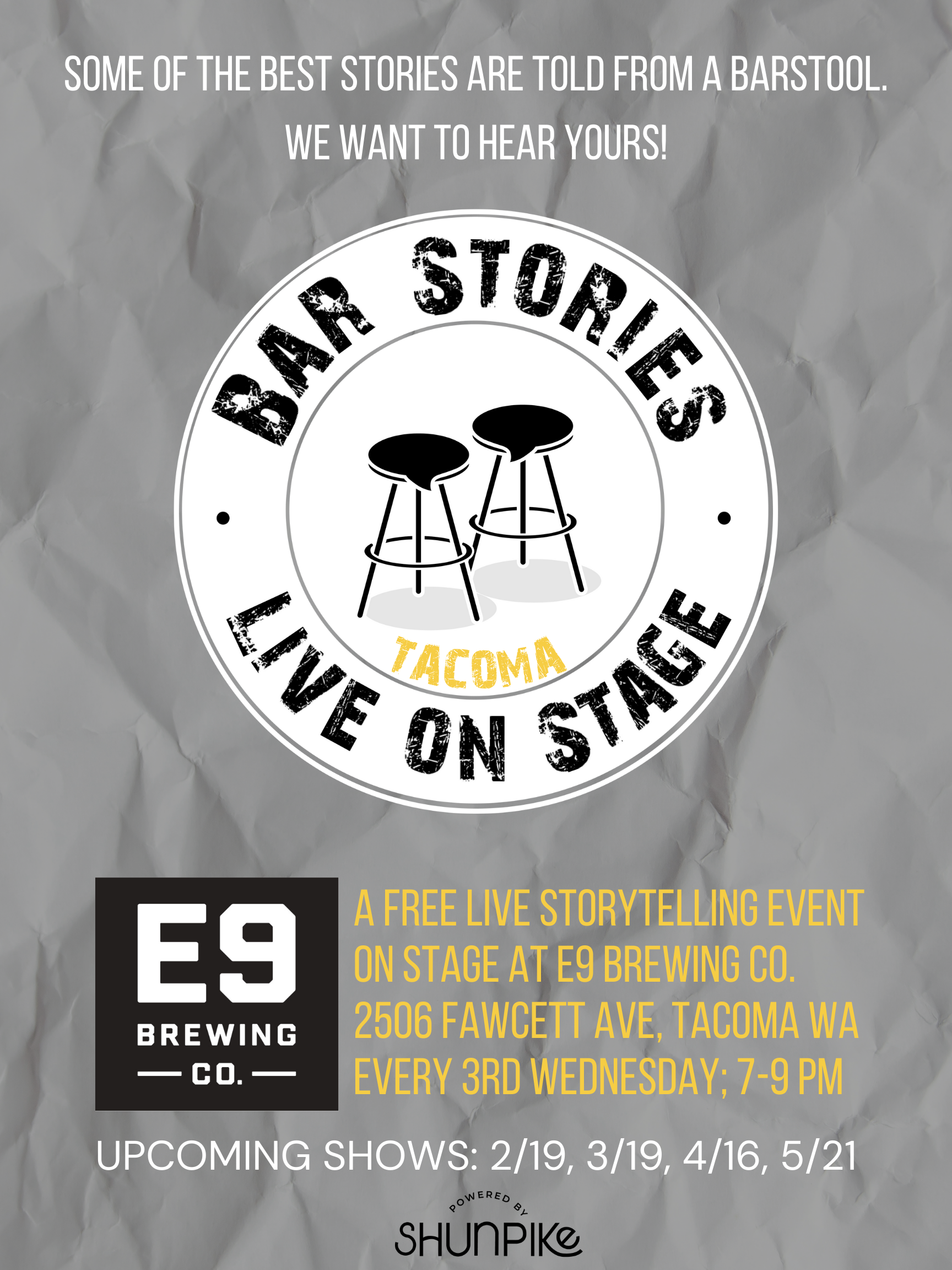 called Bar Stories Live On Stage. We have expanded the show to Tacoma