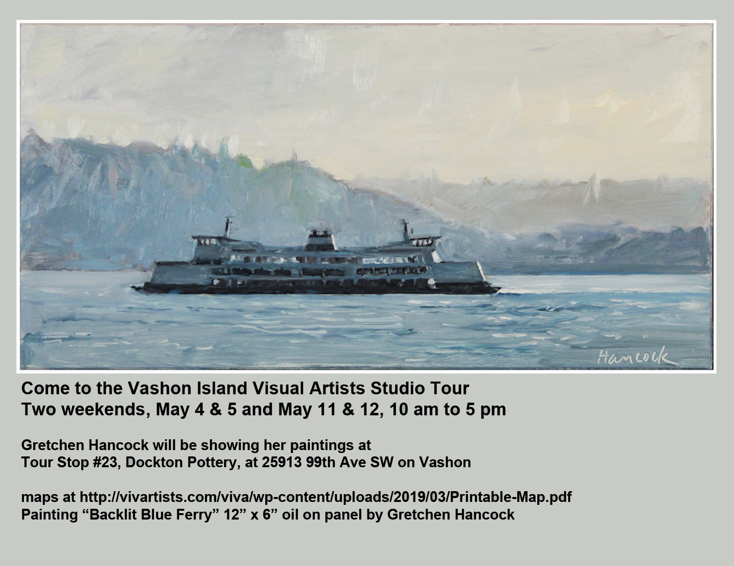 Vashon Art Studio Tour first two weekends in May