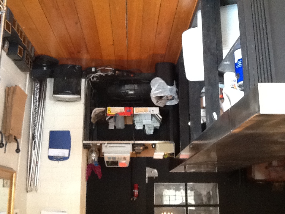 10'10" long x 3'9" high custom sales counter with a stainless steel counter