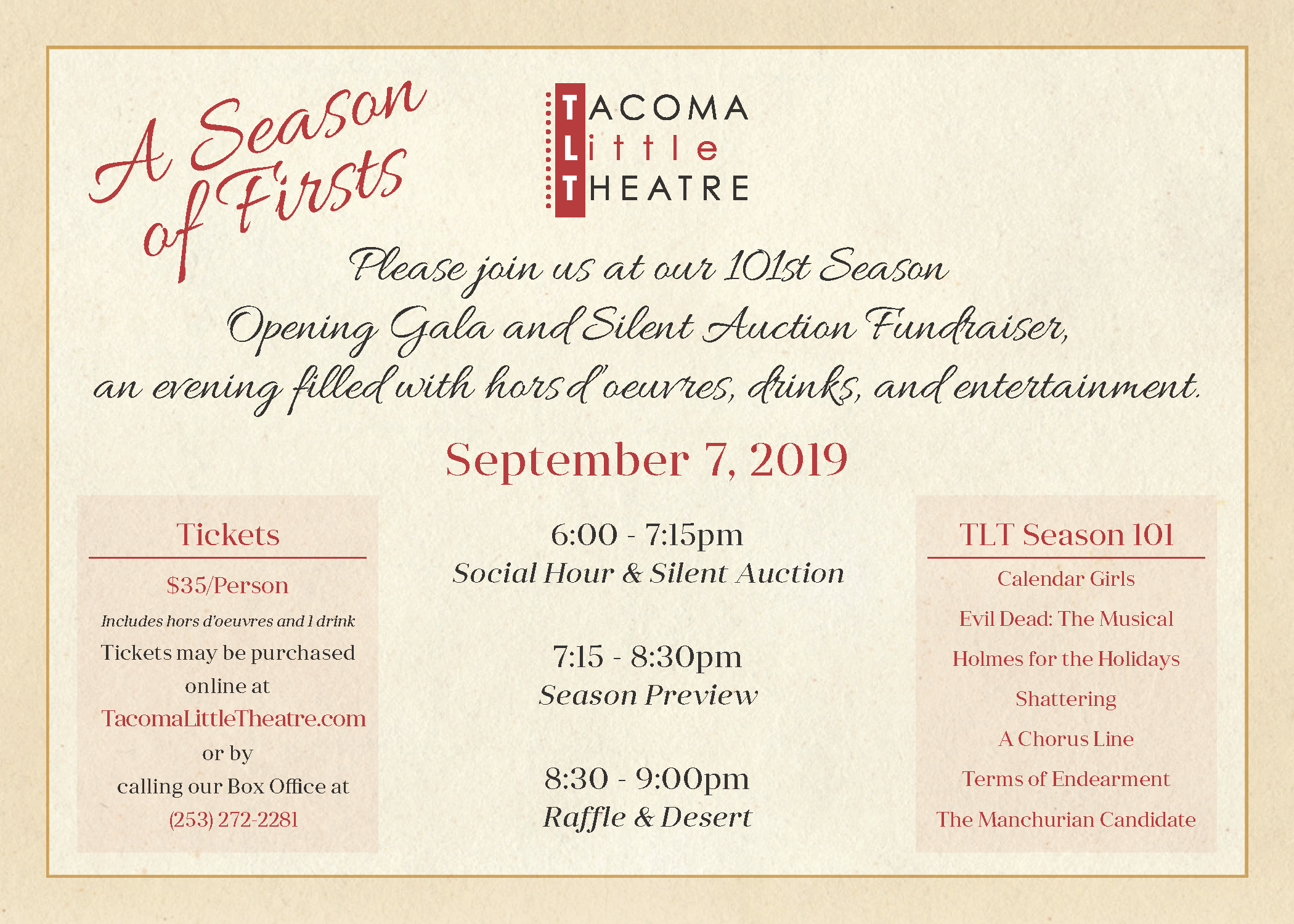 TACOMA LITTLE THEATRE presents their 101ST Season OPENING GALA