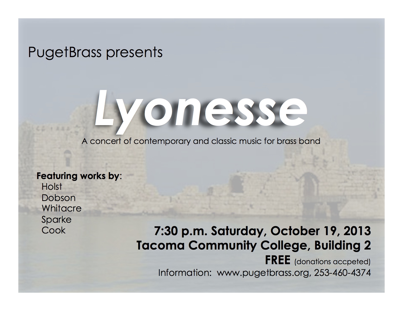 Come out for a thrilling concert with PugetBrass. This is a Seattle based, British-style brass band. It is an exciting ensemble, and we'd love to have you attend our concert!