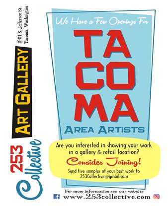 A chance to be part of the Tacoma Artist Community. Opportunities throughout the year to show your work. Have a solo show at the 253 Collective Gallery.