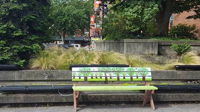A number of community groups stepped forward to take on the challenge of modifying a bench and the results are diverse, interesting, and fun. The newest bench by Girl Scout Troop #40765 can be found in City Hall Plaza at 25 West Main Street. The program includes 13 benches created by local community organizations in cooperation with local artists.