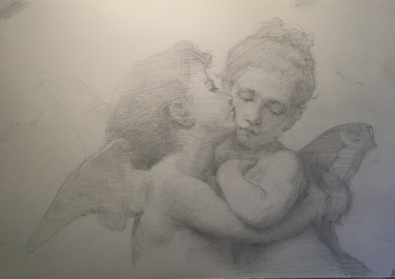 Attached drawing: Mastercopy (stages) of L'Amour et Psyche, by William