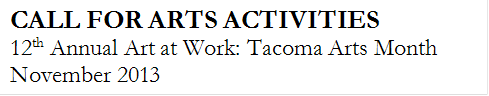 Submit your arts activity for inclusion in the 2013 Art at Work: Tacoma Arts Month online calendar!