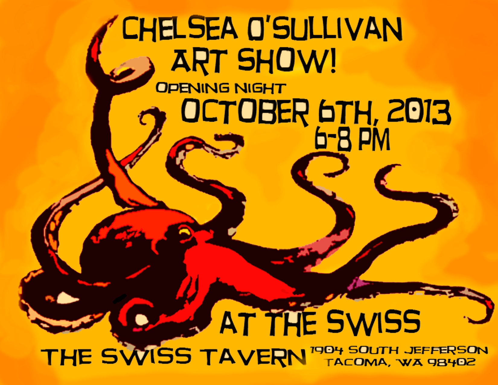 Tacoma artist Chelsea O'Sullivan will be at The Swiss (1904 S. Jefferson, Tacoma, WA 98402) on Sunday, October 6th from 6-8 pm. Come check out her most recent pieces and celebrate her completion of latest mural for the Tacoma Murals Project. The Swiss is all ages until 8 pm. Hope to see you there!