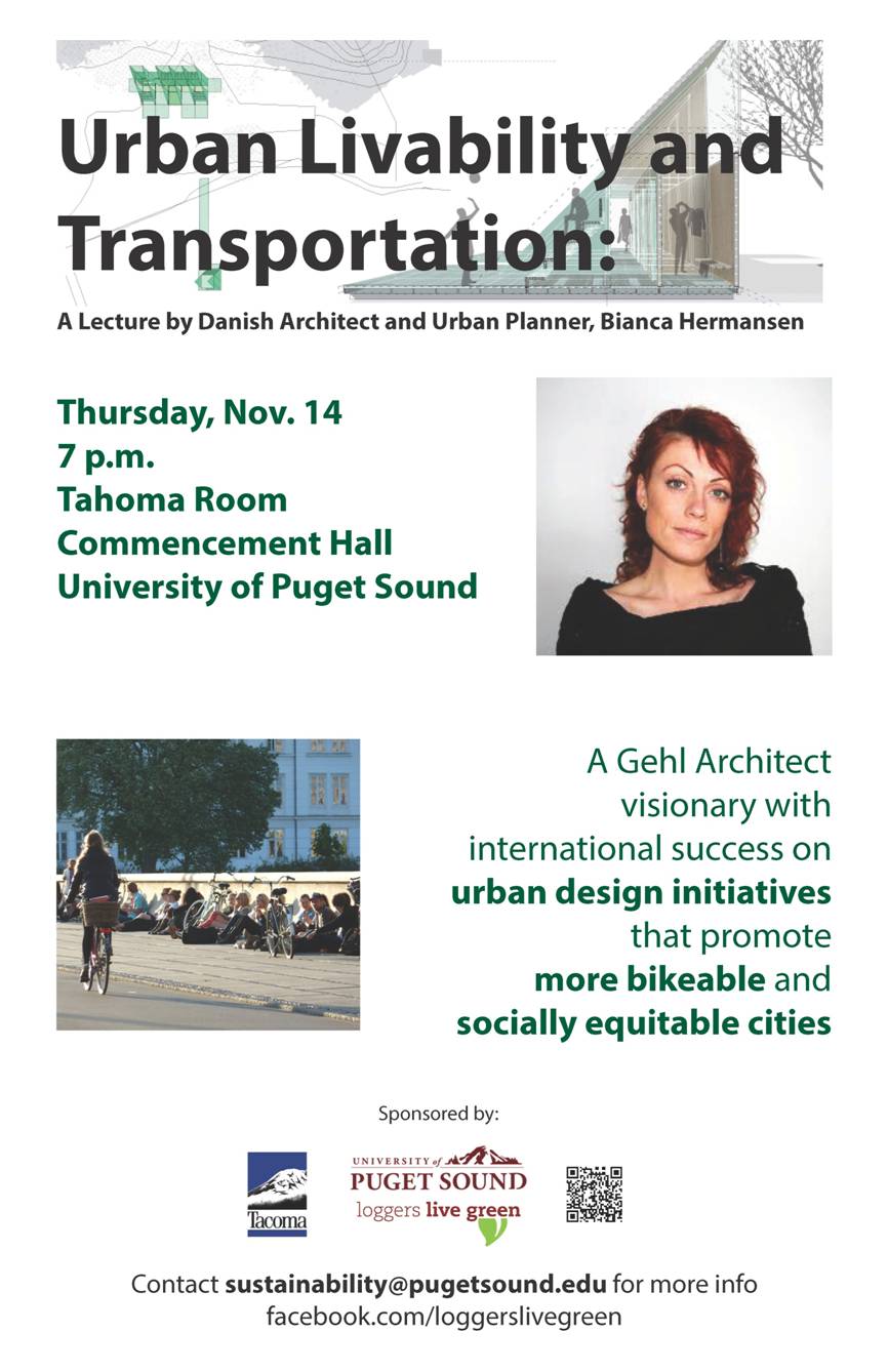 Bianca Hermansen from Gehl Architects in Copenhagen will be speaking at UPS today about Urban Livability and Transportation.