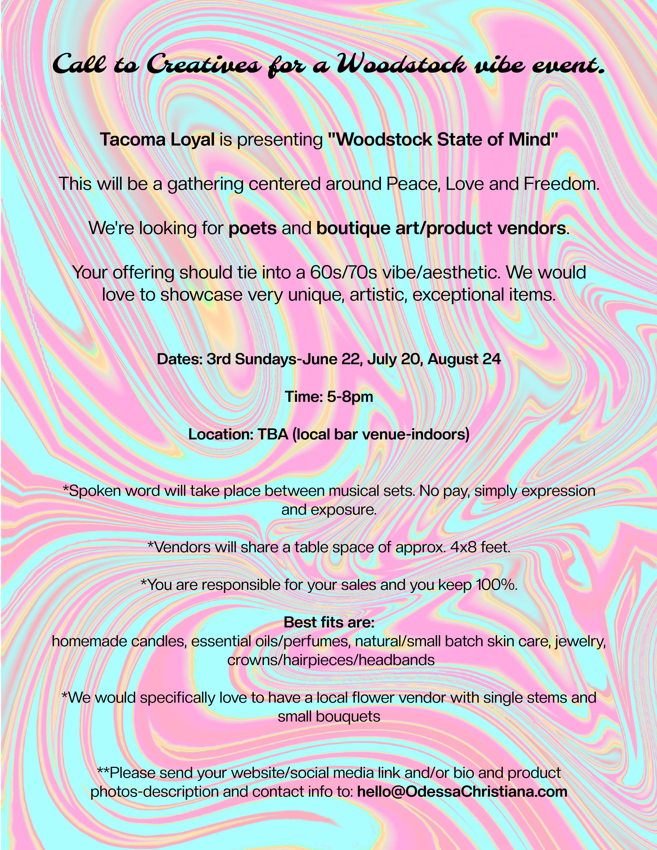 **Please send your website/social media link and/or bio and product photos-description and contact info to: hello@OdessaChristiana.com