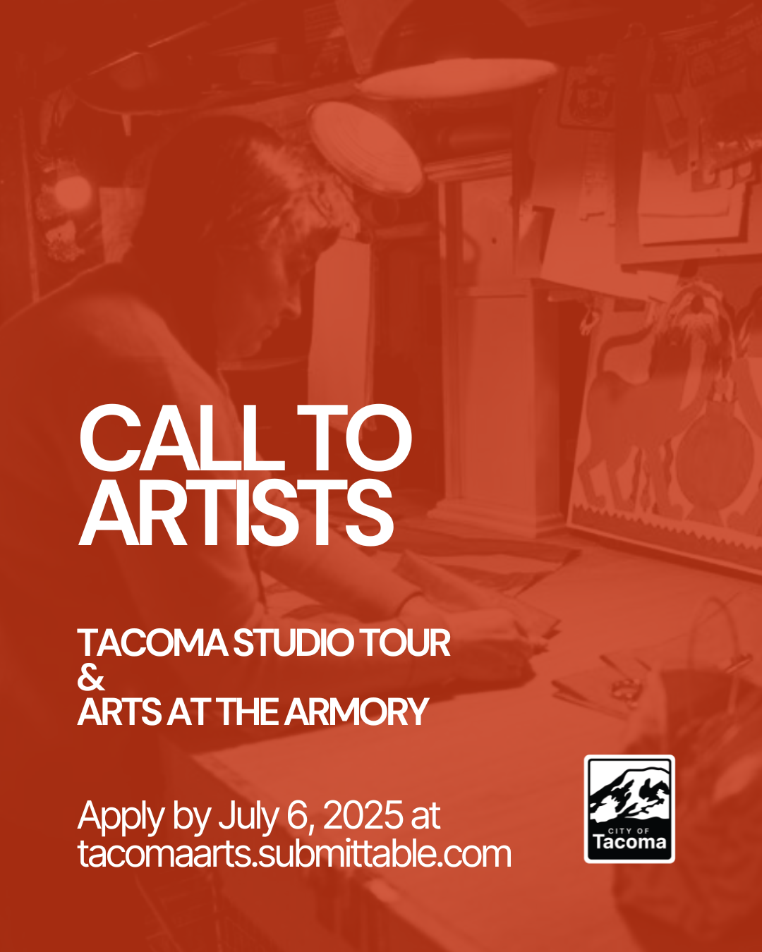 Applications are now open for the 2025 Tacoma Studio Tour and Arts at the Armory! These free opportunities are designed to help you share your work, connect with the public, and celebrate Tacoma’s vibrant arts community.