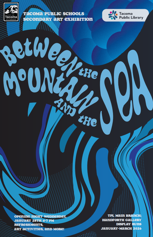 This year, Tacoma Public Schools is hosting our inaugural Secondary TPS Student Art Exhibit that will be on display at the Downtown Tacoma Public Libraryhttps://maps.app.goo.gl/MMULdHJo6Gxfrq8S7 in the Handforth Gallery from January 16th-March 27th 2026. The theme is “Between the Mountain and the Sea” and there is student work from 13 schools on display.