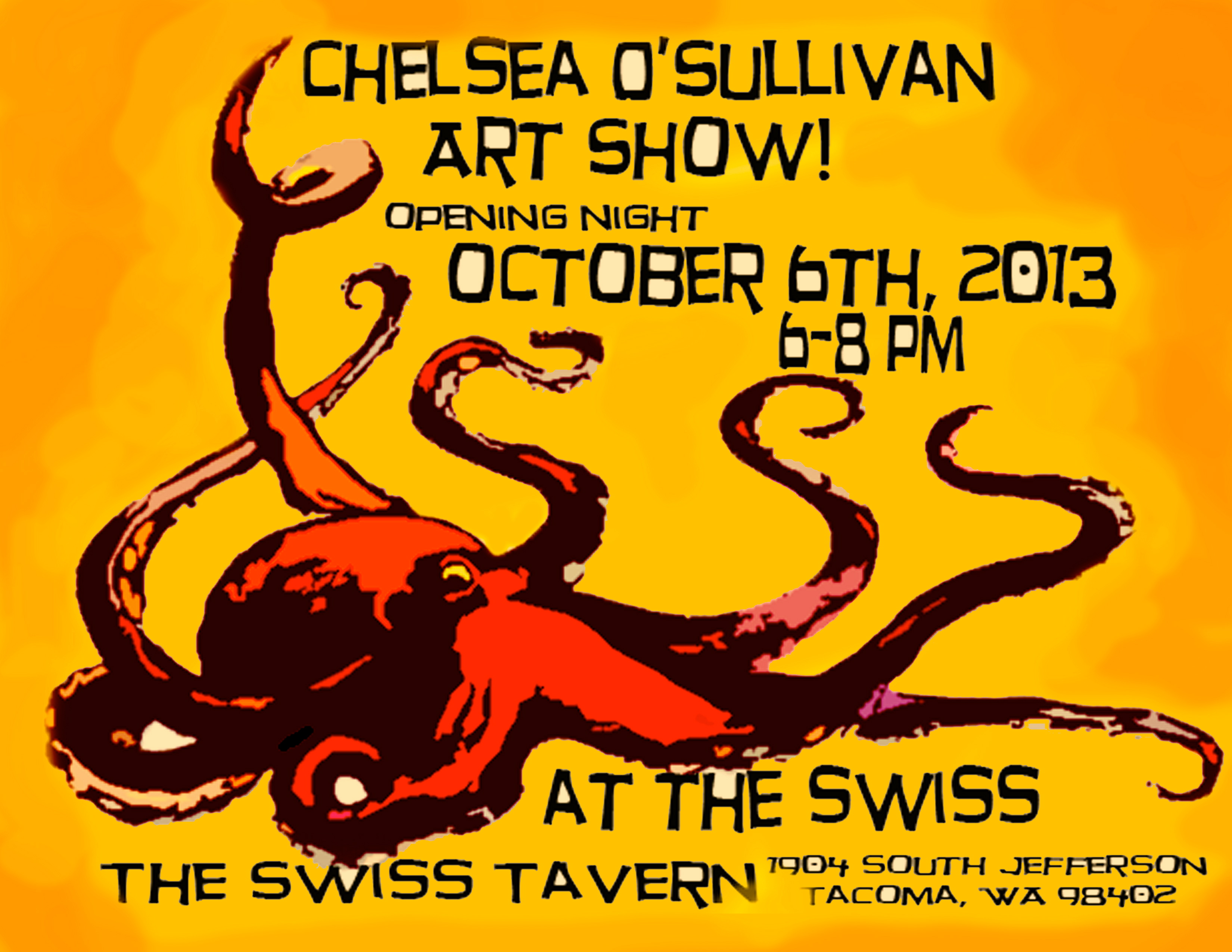 Please come for opening night Sunday, October 6th from 6pm- 8pm. We will be celebrating Chelsea completing her most recent mural for the Tacoma Murals Project and showing work from her collection. The event is free to attend and all ages until 8pm. Hope to see you there!