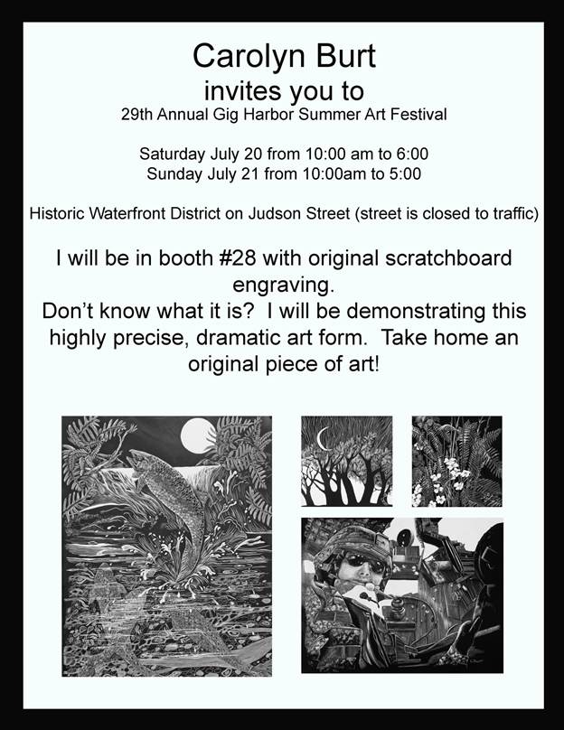 Come see Scratchboard Engraving at the Gig Harbor Summer Art Festival