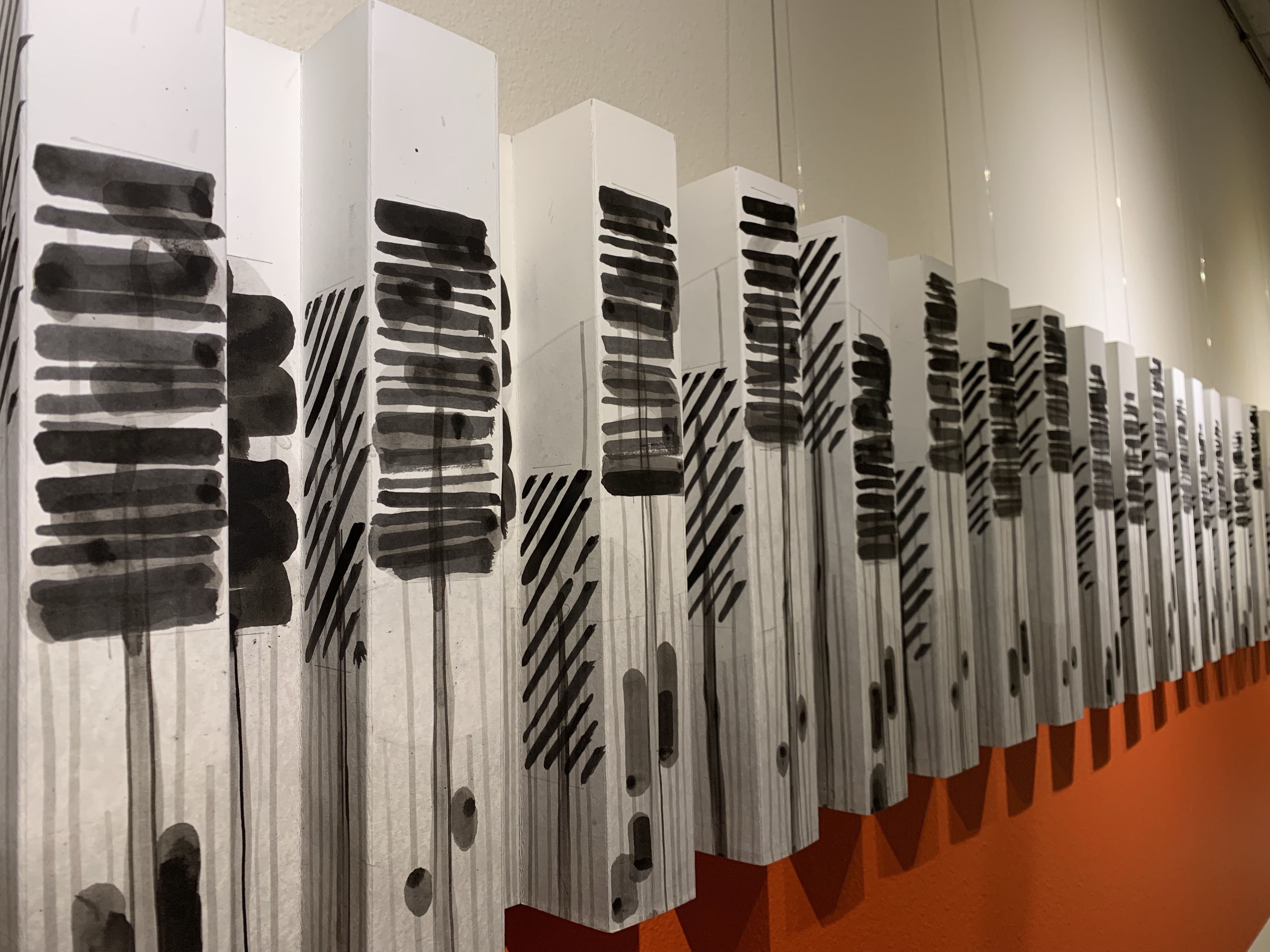 on paper, Michael’s work covers 33’ in length and fills the gallery with