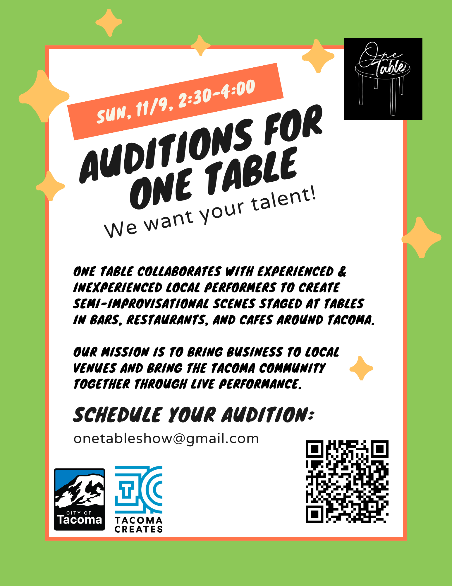 Schedule Your Audition Here https://www.onetableshow.com/upcoming-events