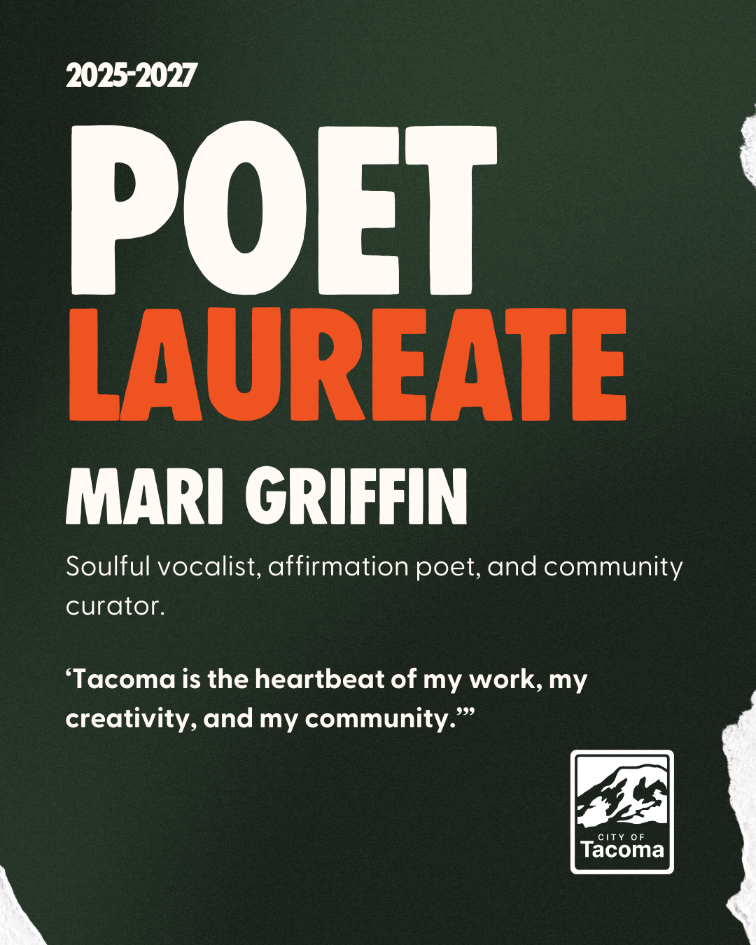 We’re excited to announce that Mari Griffin will serve as Tacoma Poet Laureate for 2025–2027.
