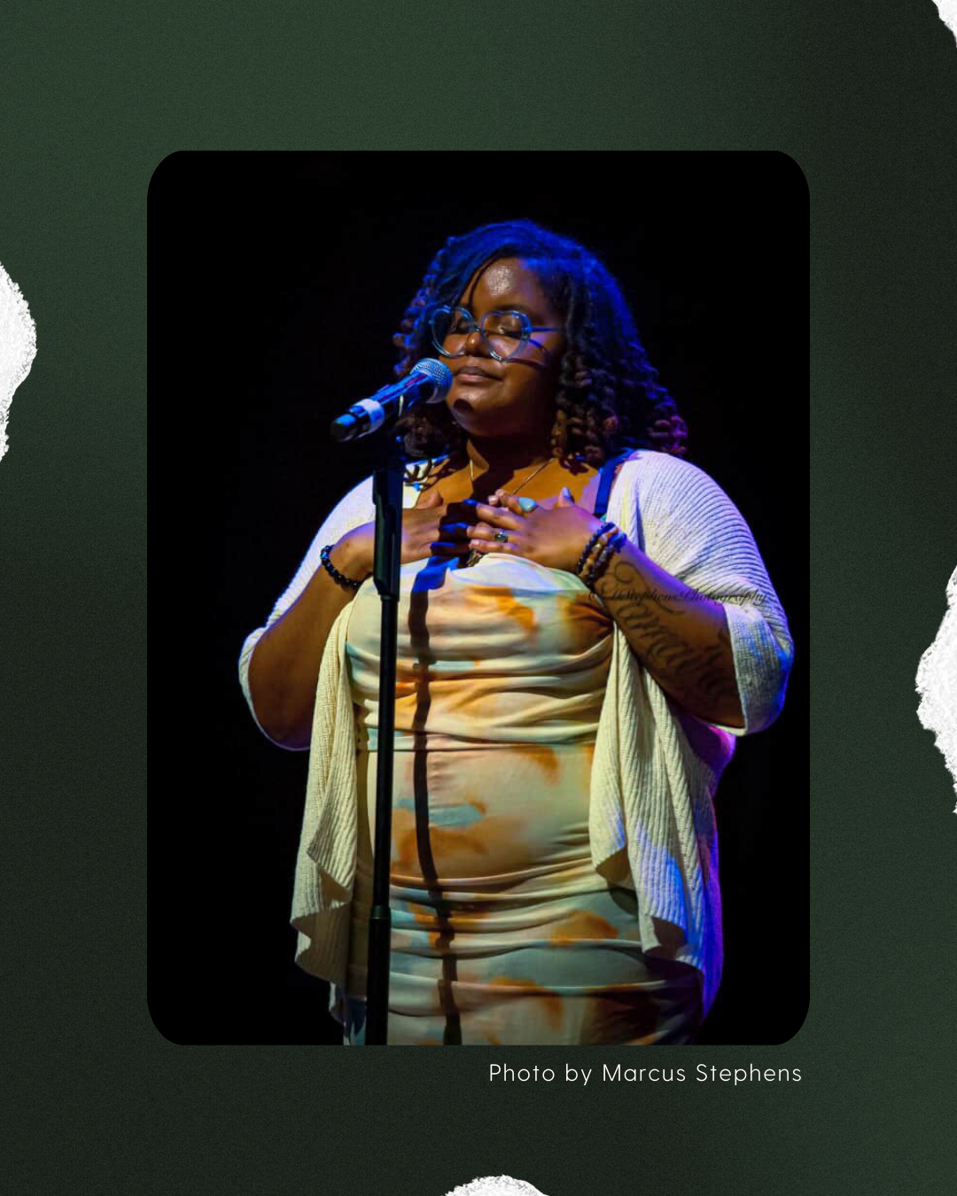 “The Soul II Soul reference really brought me back! I really enjoyed ‘I’m Home’... And I love that ‘Black Roses’ simultaneously speaks to the identities of a community of Black women as well as individuals… her singing voice is beautiful. I like that she submitted poems and a song to show some range.”